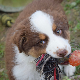 Inzwischen sind sie im Zerstörmodus angelangt. ;-) Der Welpen Spielgarten wird gerade auf Herz und Nieren geprüft und was nicht Niet- und nagelfest ist, wird gnadenlos weggerissen und stolz durch den ganzen Auslauf mitgeschleift. Aber wie soll man diesen wahrlich hochgradig perfektionierten Hundeblicken böse sein. :-)